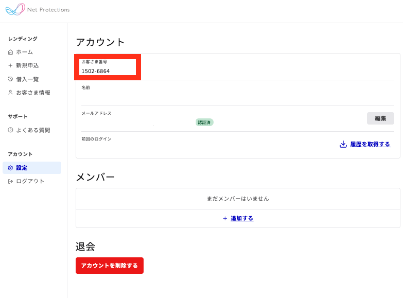 お客さま番号はマイページの「設定」よりご確認いただけます。