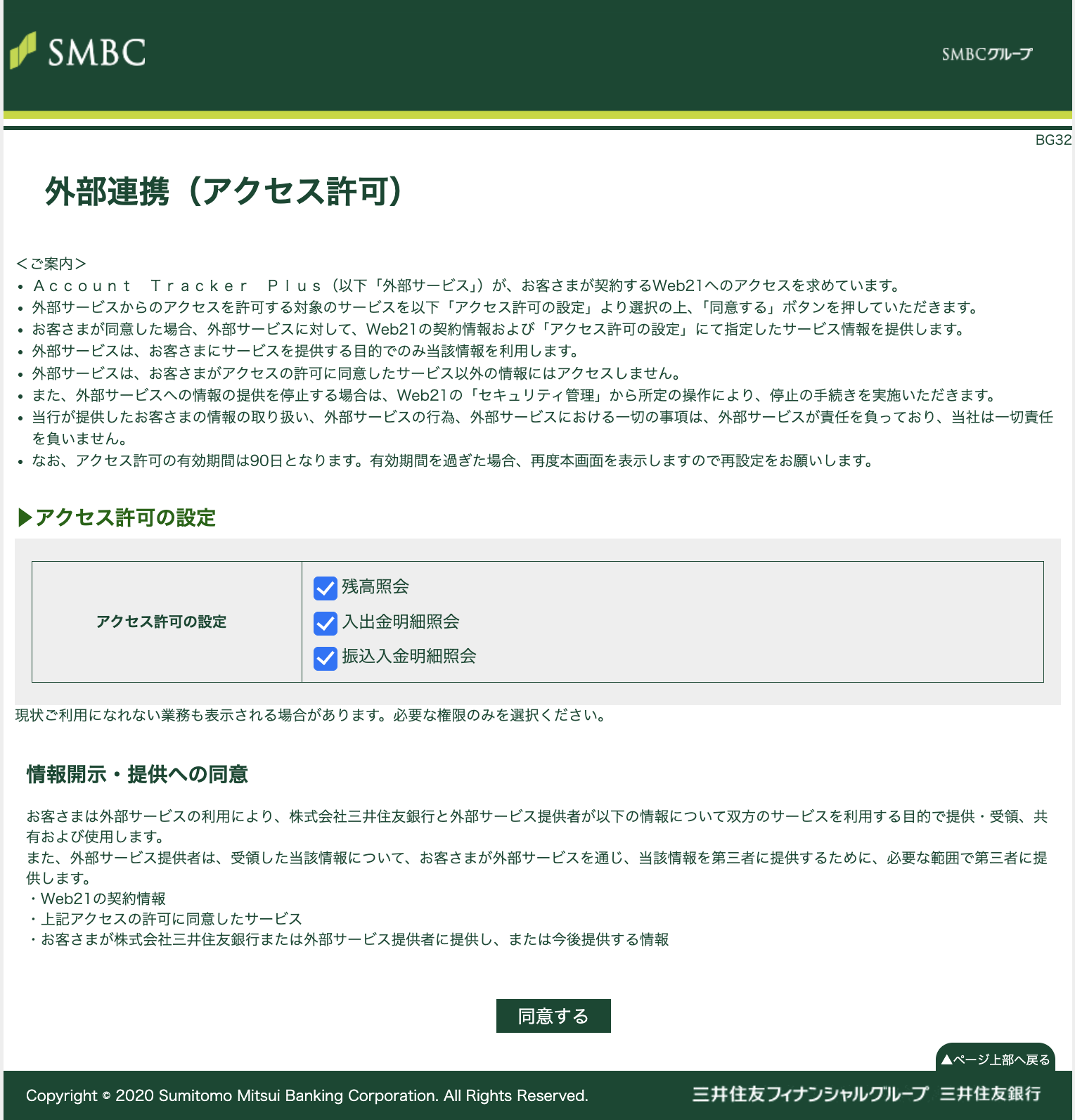 - 初回の登録時のみ確認画面が表示されます。「同意して次へ」を押してください。
