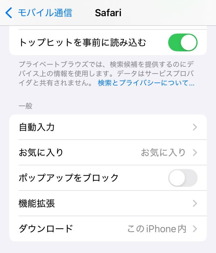 - ホーム画面の「設定」アプリを開き、「アプリ」>「Safari」をタップします。