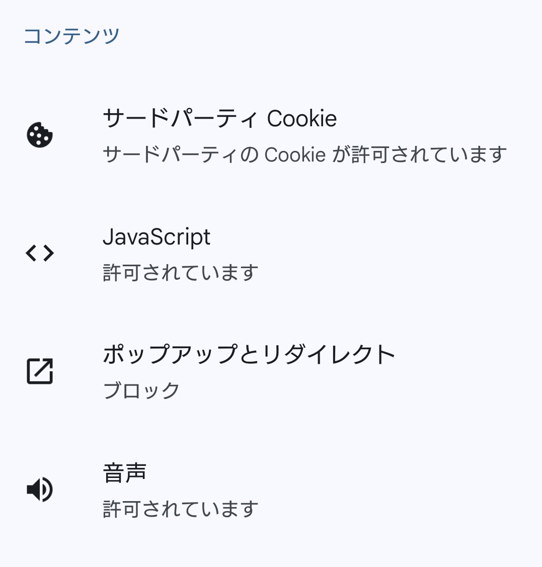- 「サイトの設定」>「ポップアップとリダイレクト」をタップします。